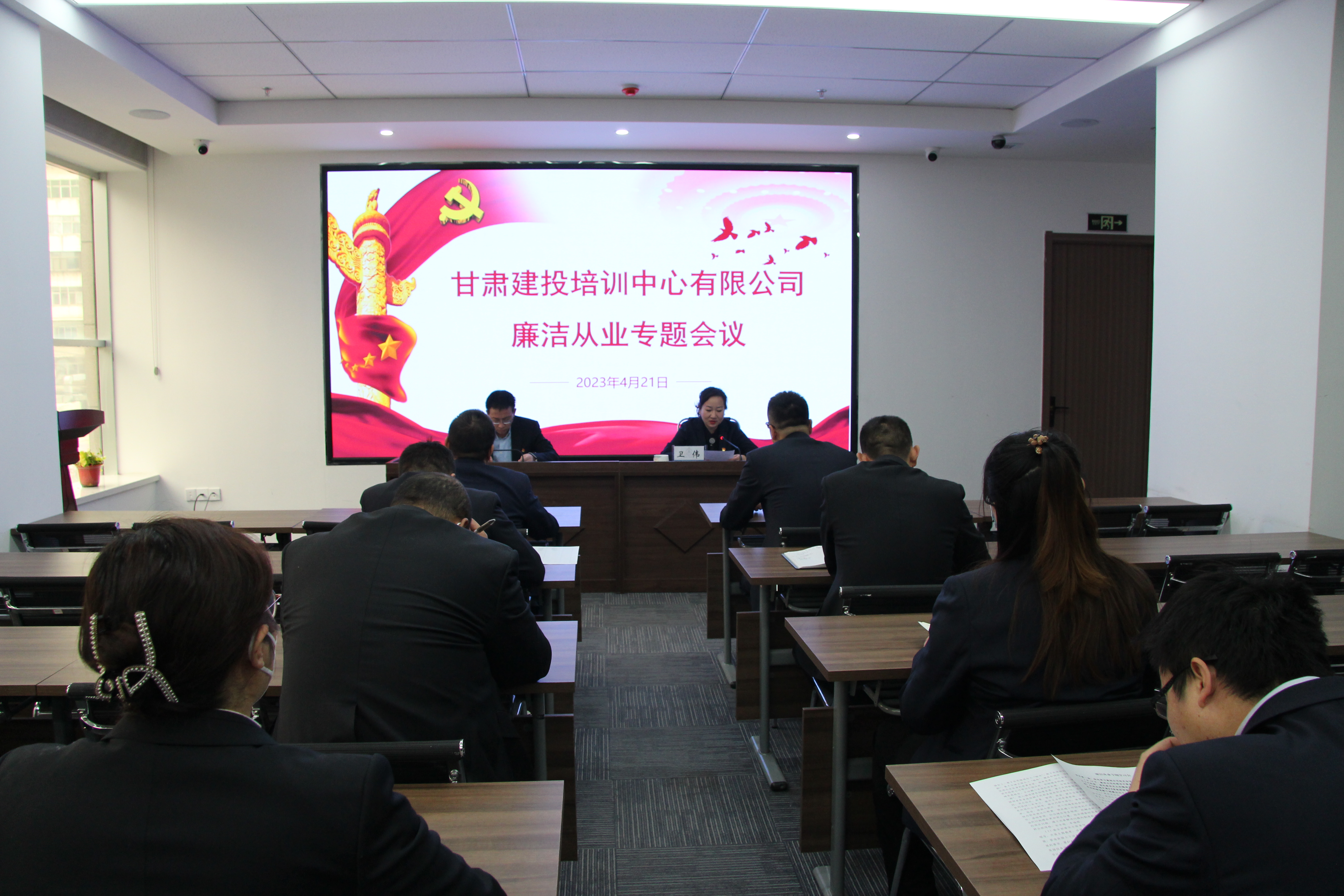 4月21日,甘肅建投培訓(xùn)中心有限公司召開干部廉潔從業(yè)專題學(xué)習(xí)會。甘肅建投培訓(xùn)中心有限公司黨支部書記、總經(jīng)理衛(wèi)偉帶頭傳達了甘肅建投領(lǐng)導(dǎo)干部警示教育大會、年輕干部廉潔從業(yè)座談會會議精神和部署要求。公司全體干部參加會議。